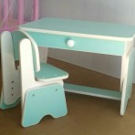 Есть регулировка высоты, благодаря чему данный комплект подходит детям возрастом от 2-х до 7-ми лет. Все края закруглены и обработаны мягкой кромкой ПВХ, удобные выдвижные ящики