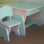 Есть регулировка высоты, благодаря чему данный комплект подходит детям возрастом от 2-х до 7-ми лет. Все края закруглены и обработаны мягкой кромкой ПВХ, удобные выдвижные ящики