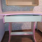 К парте прилагается стул, тоже растущий (потеряны шурупы - сидушка отлетела).