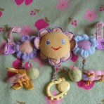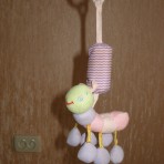 Жерафчик крепится за большое кольцо на коляску, шуршит, пищит, сделан из разных материалов специально для маленьких.
