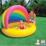 Хотите видеть радость в глазах Вашего ребёнка – приобретите ему надувной детский бассейн Интекс 57416. Ведь в нём Ваш малыш не только сможет наплескаться вдоволь, но и поиграть с забавным лягушонком. Надувное дно бассейна Intex (Интекс) обеспечит Вашему ребёнку мягкую посадку. Цветной радужный тент будет прекрасной защитой от палящего солнца. Улыбка лягушонка будет вызывать улыбку на лице Вашего малыша. Объём бассейна при 80% наполнении составляет 45 литров.