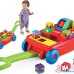 Чтобы кубики не растерялись среди большого количества игрушек, их можно хранить в чудо-тележке. Каждый раз, когда малыш кладет кубик на весы, играет веселая мелодия.