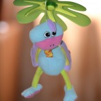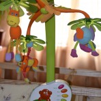 - на дугах под полупрозрачными пластиковыми листьями подвешено 3 забавных зверушки - жирафик, обезьянка и страусенок.