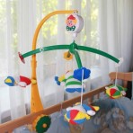 Веселые разноцветные клоуны медленно кружатся под спокойную мелодию. Музыкальный мобиль в хорошом состоянии. Единственно нет коробки.Идеально подходит для любого состояния ребенка.