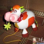 Чудесная игрушка-каталка – забавная Бурёнка на колёсиках, музыкальная, говорящая, со световыми эффектами. Малыш тянет её за верёвочку, а Бурёнка ...