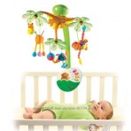 Теперь игрушки как живые, каждая зверушка движется не только по кругу, но и вокруг своей оси.На дугах под полупрозрачными пластиковыми листьями подвешено 3 забавных зверушки - жирафик, обезьянка и страусенок. Это мягкие игрушки с длинными, свободно болтающимися лапками, милые мордашки - вышивка. Они снимаются и могут использоваться для независимой игры.