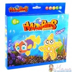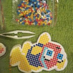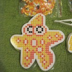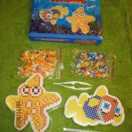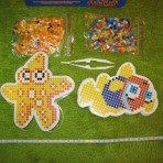 Добрый день! Уже есть готовая форма рыбки и звездочки (в данном случае), на нее выкладывается мозаика как бусинки на штыречки по цвету, когда все готово, сверху ложится бумага или ткань и прижимается горячим утюгом - получается картинка, бусинки уже не вываливаются, красиво и прочно