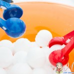 Что с этими шариками делать дальше? А что делают дети со снежками? Правильно, бросают в цель. Или строят маленьких снеговиков. Или выкладывают узоры на скамейке. Можно много чего придумать со столь идеальным предметом, как шар, который и в руках просто так приятно подержать.