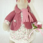 Милая мягкая зайка станет не только хорошим другом Вашему малышу, но и оригинальным украшением интерьера. Размер - около 30 см. Ручки и ножки подвижные. Может сидеть. Материалы: флис, хлопок, набивка ...
