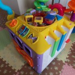 Можно поставить все кубики на вершину куба, нажать на кнопку, заиграет музыка и кубики поедут на своеобразной карусели! Этот игровой центр научит Вашего ребенка играть сидя, а также вставать!