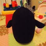 Пингвин имеет тяжелое основание, поэтому не переворачивается. Сам пингвин покрыт тканью. Игрушка работает от 3-х батареек типа С.