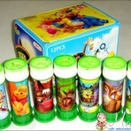 Мыльные пузыри в фигурной баночке с рисунками мультигероев и игрой "лабиринт" на крышке. Отлично дуются и летают. Прекрасное развлечение для ребенка на любом празднике. П-во Китай