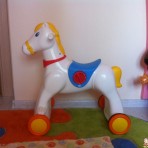Чудесная лошадка, воспроизводящая звуки ржания и стука копыт. Лошадка на колесах, но может легко устанавливаться на качающееся жесткое основание. Лошадка-качалка стимулирует моторные навыки ребенка. О...
