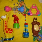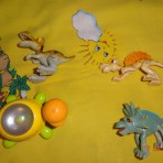 интересует мишка фото 2, три динозавра фото 5, фото 7 и 11. Есть в наличии и где забирать? в лс.