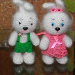 вязаный из махера заяц, наполнитель - синтепон, ручная работа