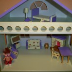 Небольшой кукольный домик с комплектом мебели и куколкой мальчик-бычок.