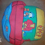 Подушка ввиде Нового ковчега. Со всех сторон в тематических рисунках. Без пятен и дырок. Состояние на 5. Размеры 25 на 25 см