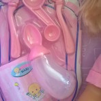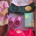 В игровой набор кроме кулы входит посудка, памперс, горшок, одежда.