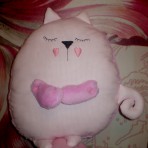 Подушка-няшка)) Котофей выполнен из льна и меха, ооочень мягенький)), набивка синтепух. Высота тельца 28 см