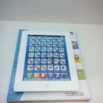 Планшет содержит 42 кнопки, буквы, животные, кнопки со словами, кнопки произношение, кнопки "найди букву", песенки, алфавит.