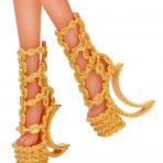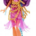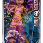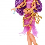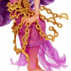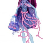 Кукла Монстер Хай Клодин Вульф Monster High Haunted Getting Ghostly Clawdeen Wolf окутана цепями призрака. В новой серии Хаунтед - школа призраков, - монстряшки опробовали на себе, как стать приведением. Главные черты героини Школа Монстров сохранились прежними - ушки, клыки, когти оборотня, преобладание фиолетового и золотого цвета в одежде, макияже и прическе. Кукла Клодин Вульф Хаунтед Монстер Хай одета в короткое платье розово-фиолетового цвета. Низ платья украшает летящая оборка из сетчатой ткани. Оборка движется при любом действии куклы, создавая впечатление полета настоящего призкрака. Цепи, украшающее платье и туфли Клоин, золотые. Каблук туфель выполнен в виде месяца. В серии Haunted Getting Ghostly Monster High у Клодин Вульф длинные фиолетовые волосы, густая челка. Прическу куклы можно изменить. Руки и ноги куклы Монстер Хай подвижны, сгибаются в локтях и коленях. Голова наклоняется и поворачивается. Особенно привлекательно выглядит новый макияж куклы Клодин Вульф. Кошачьи глаза подчеркивают сотни перламутровых блесток, переливающихся и меняющих отблеск при разном освещении.