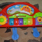 Игровой развивающий центр "Фитнесс-пианино" стимулирует сенсорное восприятие малыша и физическую активность. Различные действия – нажатия, вращение, удержание – развивают мелкую моторику рук, тренируют координацию рук и глаз и стимулируют мышечную активность. Игровой центр можно использовать сидя и лежа. При нажатии ногами на педали в нижней части игрового центра раздаются забавные звуки,Съемное пианино с различными звуковыми и световыми эффектами можно разместить на кроватке. При нажатии на кнопку птичка выглянет из ветвей дерева и издаст забавный звук. Солнышко двигается вдоль горизонта, а фрукты на дереве светятся под звуки приятной мелодии. Разноцветного червячка можно снять и использовать как отдельную игрушку.Если за него потянуть когда он прикреплен к центру будет играть мелодия.