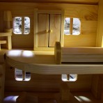 Домик сделан из натуральной древесины (сосна), все детали идеально отшлифованы и закруглены острые углы, покрыт домик натуральным льняным маслом для дерева на основе пчелиного воска.