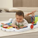 Малыш играет, или комфортно отдыхает, с удобной поддержкой спины в положении полулежа/полусидя. Ребенок, перемещая ножки, может легко дотянуться до кнопочек и активизировать забавные мелодии со вспыхивающими огнями.