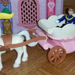 Замок игрушечный с мебелью в очень хорошем состоянии.Единственный минус-утеряна принцесса.