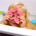 Размер игрушки (12*12 см) идеален для детских ручек. Чтобы разлепить игрушку на поверхности достаточно опустить ее в воду. Пазл для купания легко крепится и хорошо держится.