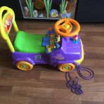 Машина в отличном состоянии, сигнал, пианино, звуковые эффекты, подсветка, пианино, фигурки танцуют, руль крутится и поворачивает колеса+ вместительный багажник) все очень качественное ( фирма kiddie...
