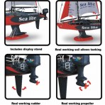 3. Движением яхты осуществляется как за счет ветра, так и приведя в действие мотор. Радиус действия пульта управления до 50 м. Время действия после зарядки приблизительно 1 час. Сама яхта имеет прекрасный, детально проработанный, дизайн.