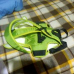 Кенгуру зеленого цвета, предназначен с 2-х месяцев, есть козырек, 3 положения, надежное крепление, сзади есть кармашек.
