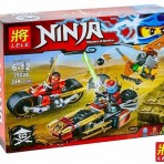 Конструтор «Погоня на мотоциклах» станет отличным подарком на предстоящие праздники, или просто порадует ваших детей)Ребята заполучили могущественный артефакт, но пираты так просто не сдаются.Скифи вооружен глайдером. Его легкая конструкция позволяет набрать огромную скорость, а пушка по центру, способна уничтожить технику убигающих врагов. Летающий аппарат вооружен двумя гарпунами, которые в силах зацепится за транспорт противников и устроить погоню.В арсенале наших героев два мотоцикла. Они маневренны и с легкостью ускоряются. Колеса мотоцикла Нии защищены конструкцией, ведь именно она перевозит драгоценный артефакт. На мотоцикле Кая два лезвия, котрые защищают от тарана. Золотые мечи подойдут для близкого боя. Кай уже вооружен одним, а два оружия ниндзя-инженера закреплены сбоку. Пират вооружился кинжалом своего клана.В комплект входит 3 мини-фигурки: Кай, Ния, Скифи.