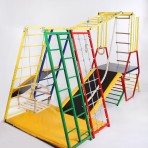 Комплектация: Рукоход, лестница желтая, лестница зеленая (березка), лестница красная (веревочная), лестница синяя-гладиаторская сетка, мат мягкий из ПВХ и поролона