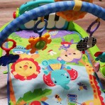 Очень нам нравился, играть можно и с игрушечками (на спинке и животике) , пианином и лежа ножками и сидя. Отличный коврик,состояние на 4, ничего не порвано, но видно что сам рисунок светлее ,все работает.
