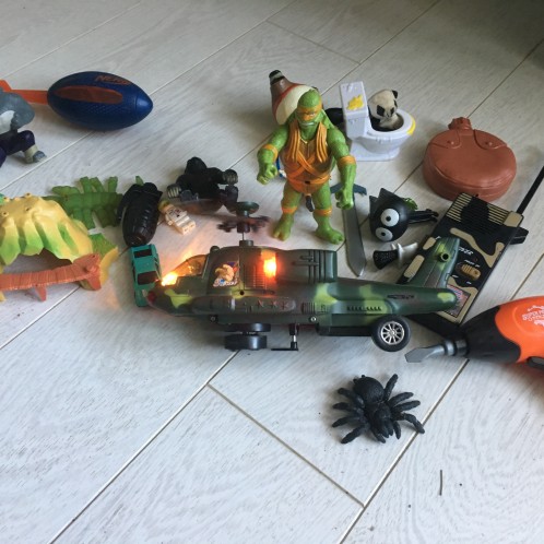Лот игрушек для мальчика, вертолёт, черепашки ниндзя, паук,Макдональдс. Вертолет и дрель рабочая, в вертолете батарейки стоят