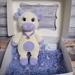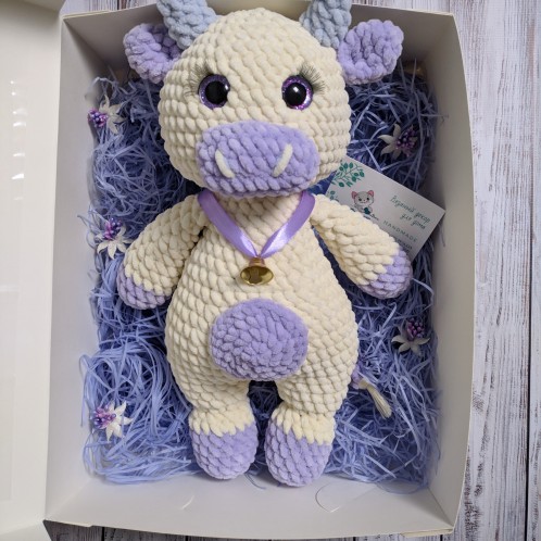 Оригинальный подарок на выписку, крестины, день рождения - плюшевая вязаная коровка ручной работы, символ 2021 года. Связана из гипоалергенной пряжи, наполнитель холлофайбер, глазки на безопасном креплении.