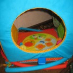 с 12 мес можно собрать в виде лаза с дверцей)) и как в туннель пролазить туда -сюда... считать зверюшек)) ездить машинкой по трассе, искать под кустиком улитку и т.п.