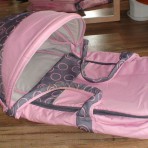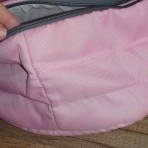 Сумка- переноска нежно розового цвета с серыми вставками( все пятна сфотографировала, после эксплуатации химчистке не подвергалась), выдерживает до 12 кг. С капюшоном(отстегивается), дно твердое, ровн...