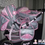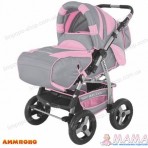 Коляска Galaxy Adamix.Трансформер зима-лето,серо-розовая,в комплекте дождевик,люлька,сумка.Состояние отличное.