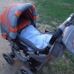 Детская универсальная коляска Adamex Galaxy: регулируемая в трех положениях спинка, 5-ти точечные ремни безопасности, а, перекидная ручка, регулируемая по высоте, амортизаторы на все колеса.