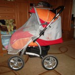 Вместительная корзина для покупок. Так же есть москитная сетка и дождевик.