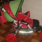 Коляска имеет люльку, которая легко снимается и ставится на шасси. В люльке вшита белая сетка, которая легко складывается в маленький карманчик в люльке. Люлька в состоянии новой, следов использования нет вообще. Минусы в прогулке - это то, что выгорели подлокотники (стали светло-коралловые), и внизу на подставке для ножек частично нет кожаной вставки.