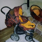 В комплект входит;люлька с матрасиком,в капюшоне есть вентиляционное окошко с сеточкой. В комплекте прогулочного блока идет двусторонний матрасик-вкладыш и чехол на ножки,который пристегивается к матрасику,образуя спальный мешок.Есть сумка,москитная сетка,дождевик.Поворотные передние резиновые колеса,с возможностью блокировки.Регулируемая высота ручки.