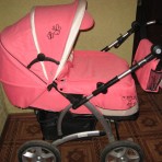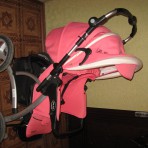 коляска кораллового цвета, с переносной люлькой в комплекте. В хорошем состоянии.
