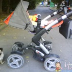 В коляску отдельно покупали очень красивый и теплый спальный мешок за 400 грн, который хорошо сочитается с коляской. Цена 1600 грн. В подарок отдам фирменные ходунки в идеальном состоянии с игровым столиком и жесткой сидушкой фирмы "Gobio"