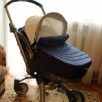 Коляска состоит из люльки, автокресла, которые можно установить на базовую станину, и прогулочного варианта.