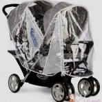 в переднем капюшоне задняя стенка сделана полностью из клеенки, чтобы ребенку, едущему в заднем кресле не загораживался обзор;