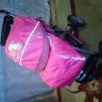 Коляска для девочки, в отличном состоянии.Прогулочная коляска. Цвет Малиновый с серыми вставками. Передние колеса поворотные легко блокируются. 5-ти точечный ремень безопасности. Съемный передний пору...